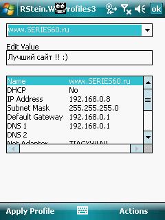 ![]() Описание: Программа для создания на кпк различных профилей подключения к Wi-Fi и последующего легкого переключения между ними. http proxy для Pocket IE (следует учесть, что Wi-Fi сеть должна быть подключена к Work network) Включение и отключение энергосберегающего режима Wi-Fi Возможность запуска программы при активации профиля Ярлыки к профилям Поддержка инсталляции на карты памяти Возможность включать Wi-Fi после активации профиля Полезна будет тем пользователям,которые часто коннектятся по Wi-Fi в различных сетях,тк позволяет не забивать каждый раз новые настройки,а воспользоваться уже созданными шаблонами. Цитата Версия: 0.0.5 Категория: Интернет и связь Совместимость: WM5,6 ******