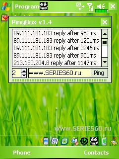 Описание: PingBox - утилита для пингования IP-адрессов и интернет-хостов. Все, что нужно для работы, так это указать количество хопов, ввести адресс и нажать на кнопку «PING» Цитата Версия: 1.4 Категория: Интернет и связь Совместимость: WM ******