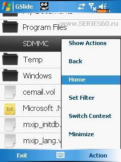 ![]() Описание: Обновление. GSlide - удобный файл-менеджер. Вы можете управлять им с помощью пальцев. Интерфейс программы очень прост, а сам программа даже не требует инсталляции. Все папки и файлы отображаются списком, который можно пролистывать вверх и вниз. Требования: .NET Compact Framework 2.0 Цитата Версия: 0.9 Категория: Системные Совместимость: WM5,6 ******