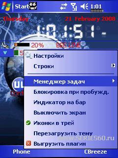 ![]() Описание: Обновление. Очень информативный тудей плагин,много настроек и возможностей. Заряд аккумулятора и его температуру,частоту и нагрузку на процессор,оператора,продолжительность разговора,количество sms,память,мониторинг Wi-Fi. Возможность регулировать частоту процессора(не всех типов),вывод в трей ярлыков безпроводных интерфейсов+добавление своих,исправления,дополнения, многое другое. В комплекте скин с часами на Тудей. Русификатор. Цитата Версия: 1.05.001beta05Build0273 Категория: Системные Совместимость: WM ******