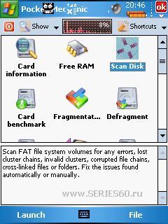 ![]() Описание: Pocket Mechanic - набор системных утилит, в т.ч. для работы с картами памяти. Возможности Pocket Mechanic: Детальная информация по картам памяти Scan disk - обнаружение и исправление сбоев файловой системы Форматирование (логическое и физическое), поддержка FAT12/FAT16/FAT32 Дефрагментация карт памяти Бенчмарк скорости работы карточки Проверка на наличие сбойных секторов Очистка системы от ненужных файлов Удаление секретных файлов и заполнение их старого местоположения на диске нулями Сканирование реестра, поиск и чистка мусора Цитата Версия: 2.73.217 Категория: Системные Совместимость: WM2003&5.0&6.0 ******