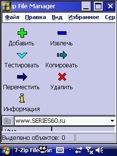 ![]() Описание: Известный архиватор теперь и для вашего КПК. Известен максимальной степенью сжатия. Так как это альфа, больше внимания было уделено функциональности, чем внешнему виду. Цитата Версия: 9.05a1 Категория: Утилиты Совместимость: WM5,6 ******
