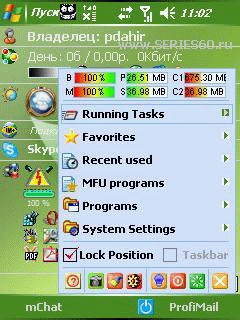 ![]() Описание: Набор полезных утилит, лончер Mobitools - программа для выполнения некоторых полезных функций на Pocket PC КПК: Turn Off, Soft Reset, Tasks manager, Launcher и Speed up. Возможности Mobitools: - Tap n Hold для перехода к экрану Today - Остановить все программы кроме активной - Полностью настраиваемый интерфейс - Отображает статус батарей, памяти, внешних карт памяти - Легко выполняется переключение и закрытие задач, выключение, останов всех программ, Soft Reset - Настройка и замена пиктограмм программ - другое Обновления версии Mobitools 3.3: - Полная совместимость с Windows Mobile 5.0 - Поддержка квадратных экранов - Возможность изготовления скриншотов - Умный мониторинг последних использовавшихся программ - Подсказки к элементам управления - Настройка основного меню Цитата Версия: 3.3 Категория: Интерфейс и лончеры Совместимость: WV2003,5.0 ******