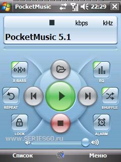 Описание: Обновление плеера. PocketMusic - продвинутый аудио-плеер с 10-полосным эквалайзером проигрывает музыку в форматах MP3, Ogg Vorbis и WMA. Есть вариант интерфейса с крупными кнопками, ориентированный на работу в горизонтальном положении экрана. На экране Today можно разместить «органы управления» плеером, установив соответствующий плагин к «рабочему столу». Улучшено качество работы эквалайзера (он оптимизирован для работы на процессорах XScale). Также программа PocketMusic Player Pro «научилась» запоминать, на каком месте было остановлено воспроизведение в прошлый раз. А еще есть возможность автоматического сканирования всех папок на наличие аудио-файлов. Возможности PocketMusic Player Pro: - Поддержка MP3, OGG, MP1, MP2, WMA во внутренней памяти, на карте памяти, в локальной сети, в интернете - Специальная адаптация для прослушивания аудио книг - поддержка закладок - Работа в пейзажном режиме - Будильник и автовыключение по таймеру - 10 полосный эквалайзер и функция Extra Bass - Кроссфейдинг - Можно устанавливать скины Winamp 2.x - Панель управления PocketMusic Player Pro на экране Today - Работа с музыкальными библиотеками - Функция выключения экрана без прекращения работы - многое другое Цитата Версия: 5.1 Категория: Мультимеди Совместимость: WM ******
