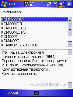 ![]() Описание: Pocket Explain - это электронный толковый словарь русского языка. За основу взят словарь С.И. Ожегова и Н.Ю. Шведовой. В базе имеется 39946 записей. Цитата Версия: Категория: Офис Совместимость: WM2003,5.0 ******