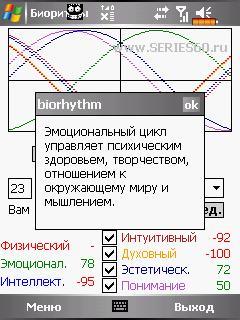 ![]() Описание: Биоритмы - программа для расчета семи видов биоритмов, сравнение биоритмов. Возможности программы Биоритмы: - представления биоритмов в виде одного из двух графиков: столбики и синусоидный график. - два алгоритма расчета биоритмов - сравнение биоритмов двух людей, прогноз их совместимости. Цитата Версия: 0.6.1 Категория: Рaзное Совместимость: WM ******